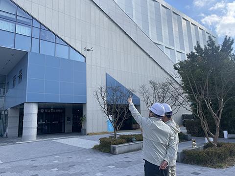 광주북구시설관리공단(이하 공단)은 22일 광주 북구종합체육관에서 초경량비행장치(이하 드론)를 활용한 시설물 안전점검을 실시했다.