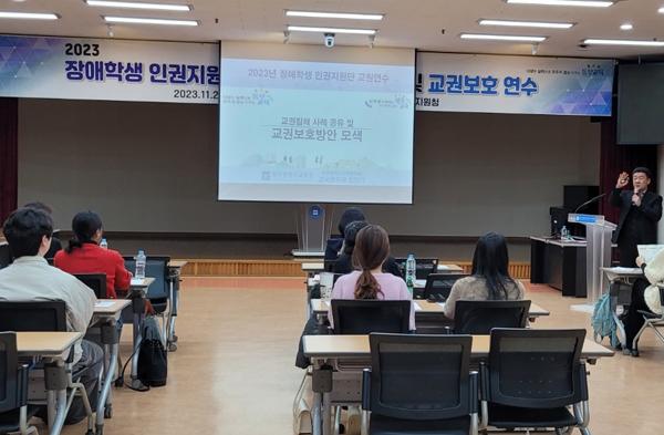 광주동부교육지원청이 지난 23일 특수교사 및 통합학급(특수교육대상학생이 포함된 학급) 담임교사 20명을 대상으로 교권보호 역량 강화 연수를 실시했다.