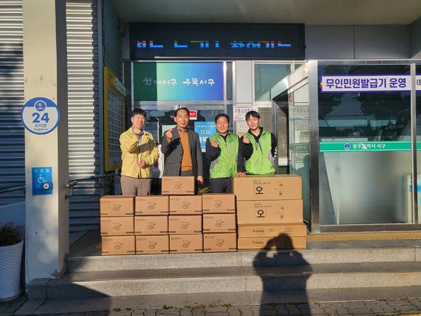 광주환경공단 직원들이 임금의 일부를 적립, 사랑의 후원물품(김장김치 13박스, 난방텐트 14개)을 마련해 지난 21일 유덕동에 전달했다. 공단 직원들은 2017년부터 관내 이웃돌봄과 사랑나눔을 실천하기 위해 주거환경개선 재능기부, 청결한 동네 가꾸기, 연탄·등유 후원 등 다양한 활동을 하고 있으며 “앞으로도 주민분들에게 따뜻하게 다가가고 어려움을 함께 극복할 수 있도록 노력하겠다”며 소감을 밝혔다.