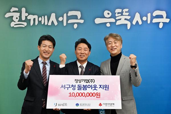 광주시 서구는 정상기업(주)으로부터 서구 지역 돌봄 아동, 청소년을 위한 후원금 1000만원을 받았다.