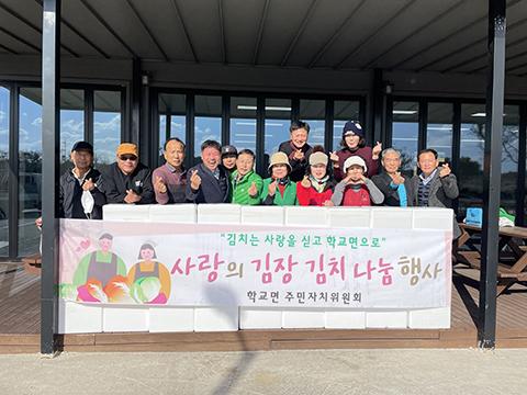 학교면 주민자치위원회는 지난달 28일 학교면에 위치한 학나래복지센터 경로식당에서 관내 경로당 및 독거노인 등 소외계층을 돕기 위해 ‘2023년 사랑의 김장 나눔 행사‘를 진행했다.