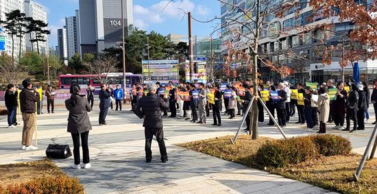 켄텍 정상화 촉구 시민대책위원회가 지난 11월 22일 한국전력 본사 앞에서 켄텍 총장 해임 건의 철회 및 정상화를 촉구하는 결의대회를 갖고 있다. /나주시 제공