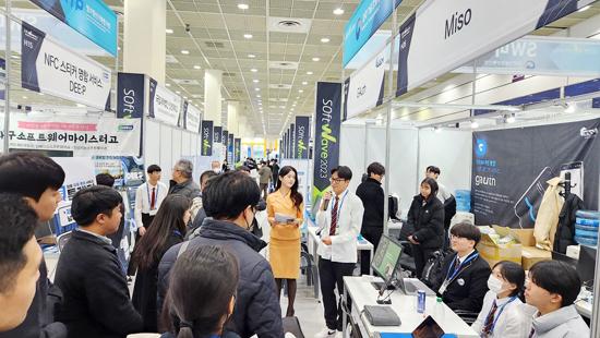 소프트웨이브 2023은 디지털 대전환의 핵심인 소프트웨어의 현재와 미래를 조망하는 국내 최대 SW 전시회이다. 이곳에서 320여 개 기업이 560개 부스를 꾸려 첨단 기술과 서비스를 선보인다. 광주소마고 학생들은 부스를 운영하며 과학기술정보통신부 및 정보통신기획평가원(IITP)의 지원을 받아 자체 개발한 친환경 앱 \'미소\'와 입학 지원 서비스 \'Hello GSM\'을 소개했다.