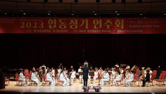 화순초등학교 관악부 학생들과 화순중학교 관악부로 구성된 관악 오케스트라 학생들이 함께 모여 지난 11월 22일 오후 7시 화순 하니움문화스포츠센터 적벽홀에서 제25회 합동 정기 연주회를 개최해 지역사회에서 큰 호응을 얻었다.