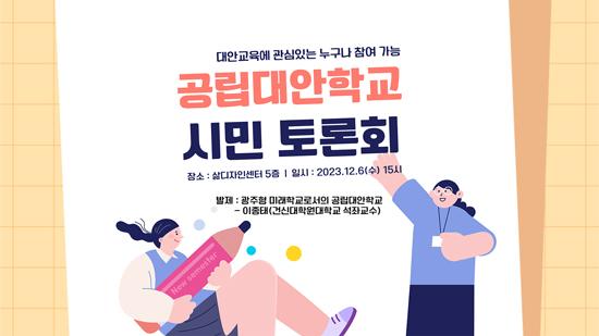 광주교육시민협치진흥원설립추진단(이하 설립추진단)이 6일 오후 3시 광주형 공립대안학교 설립에 대한 의견 수렴을 위한 토론회를 개최한다.