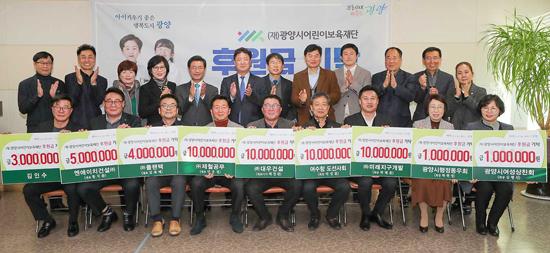 (재)광양시어린이보육재단에 기업, 단체, 개인의 따뜻한 후원의 손길이 이어지고 있다.