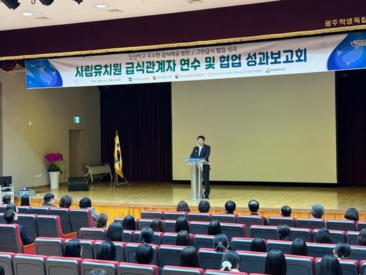 광주시교육청에 7일 사립유치원 급식관계자를 비롯한 협업기관 담당자 등과 유치원 급식 협력 체계 구축의 1년 성과를 알리고자 ‘그린급식 협업 성과보고회’를 개최했다고 밝혔다.