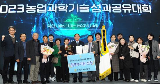 전남농업기술원은 최근 서울 aT센터에서 열린 \'2023 농업과학기술 성과공유 대회\'에서 9개도 지방농촌진흥기관 중 전국 1위의 \'최우수 기관상\'을 수상했다고 11일 밝혔다.