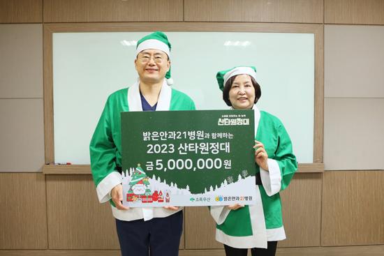 밝은안과21병원은 11일 초록우산어린이재단이 주관하는 ‘2023 초록우산 산타원정대’에 참여해 후원금 500만 원을 전달했다.
