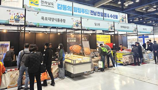 전남도가 오는 16일까지 서울 코엑스에서 열리는 \'2024년 설맞이 명절 선물전\'에 참여해 전남 수산물 판촉 활동을 펼친다. /전남도 제공