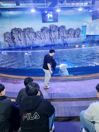 첫날은 여수 아쿠아리움을 방문해 다양한 해양생물을 관찰하며 환경 과목과 연계한 해양환경 보존과 관련된 내용 탐구, 영어와 연계한 관광 안내 리플릿 만들기 등의 활동을 진행했다.