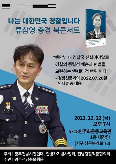 19일 광주전남촛불행동에 따르면 류 전 총경은 오는 22일 오후 광주 서구 5·18민주화운동교육관에서 저서 \'나는 대한민국 경찰입니다\' 북 콘서트를 연다.