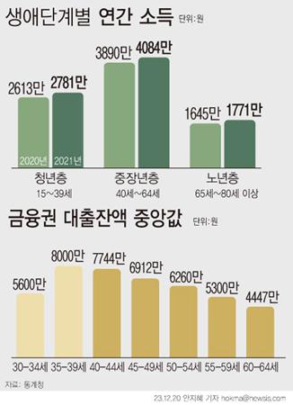 ◆작년 연소득 청년 2781만원…중장년 4084만원