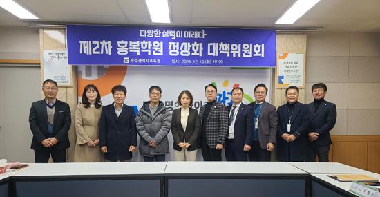 지난 2015년부터 임시이사 체제로 운영 중인 홍복학원에 학교법인을 정상화하고,다양한 의견수렴 및 공론화 논의를 통해 장기적 발전 방향을 모색하기 위하여 2022년 12월 부교육감을 위원장으로 국·과장, 시의원, 법조계·시민단체 등 12명으로 대책위원회를 구성하고, 2023년 2월 상반기 회의 개최 이후 이번이 두 번째다.