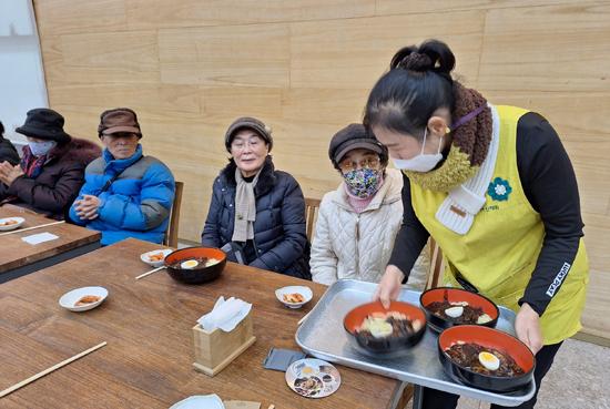 이날 행사에서는 이달 말 활동 종료를 앞둔 일자리 참여자들이 자비신행회에서 독거 어르신 100여 명을 위해 운영하는 ‘추억의 음악다방·짜장데이’에 자원봉사로 적극 참여해 직접 준비한 떡과 음료 등을 대접하며 온정을 나눴다.