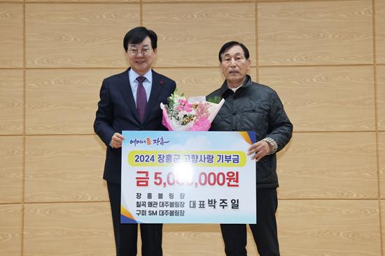 장흥볼링장 박주일 대표는 고향 발전에 힘써 달라며 작년에 이어 올해에도 500만원을 기부했다.