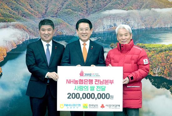 농협전남본부는 3일 전남도청에서 지역 내 소외계층 지원을 위한 2억원 상당의 \'사랑의 쌀\' 전달식을 했다.