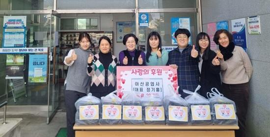 아산공업사 정기홍 대표는 후원물품을 매년 기탁하고 있어 나눔 활동의 귀감이 되고 있으며, 이번 물품은 족발 20세트로 동절기 저소득 가정의 보양식으로 기탁했으며 그 물품은 한부모 가정과 복지사각지대 발굴 대상자 등 총 20세대에 전달됐다.