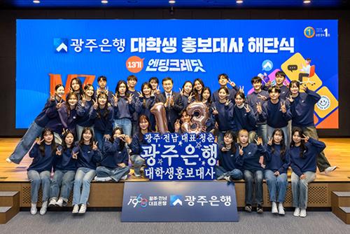 9일 광주은행에 따르면 대학생 홍보대사 13기는 지역 소재 대학교에 재학 또는 휴학 중인 30명의 대학생들이 지난해 4월 말 발대식을 하고 공식 활동을 시작했다.