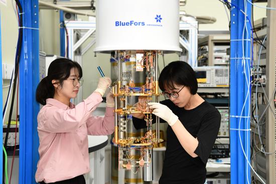 한국표준과학연구원 연구진들이 양자컴퓨터를 살펴보고 있다. /표준연 홈페이지