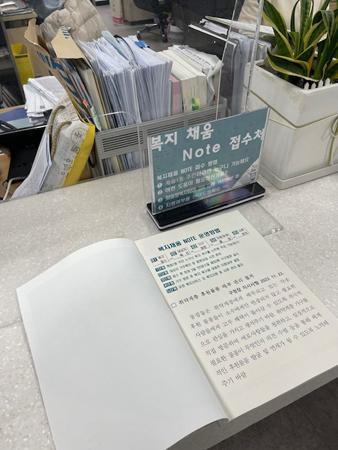 ‘복지채움 노트’는 복지 서비스를 희망하는 위기가구가 계림1동 행정복지센터 한편에 놓인 복지채움 노트에 필요로 하는 지원 사항과 사유 등을 기재하면, 담당자가 3일 안에 대상 가구를 방문·조사해 필요 물품과 서비스의 지원 여부를 결정하는 사업이다.