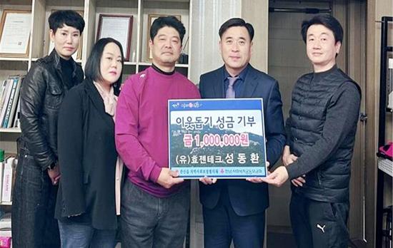 (유)효젠테크 성동환 대표는 관산읍 죽교 출신으로 지난 해 12월에도 장흥군에 인재육성장학금 100만원을 기탁하는 등 어려운 이웃을 위한 기부활동을 꾸준히 이어오고 있다.