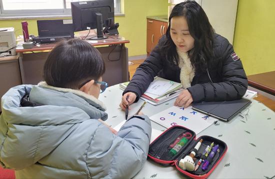 기초학력 전담교사가 학생에게 한글 교육을 실시하고 있다. /광주시교육청 제공