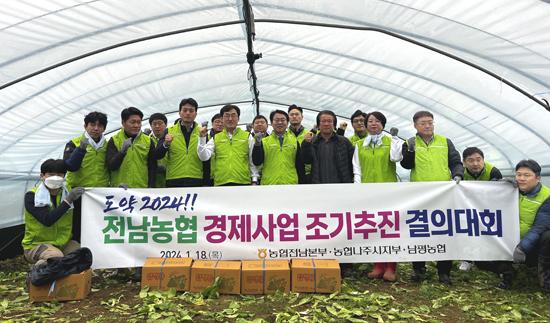 농협전남본부는 18일 나주시 남평읍에 소재한 시설원예 농장를 찾아 \'도약 2024! 전남농협 경제사업 조기 추진 결의대회\'를 개최했다.