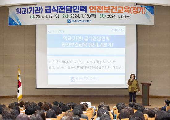 광주시교육청이 지난 17~19일 공립학교 및 기관 소속 급식전담인력 대상으로 광주교육시민협치진흥원설립추진단 대강당에서 안전보건교육을 실시했다.