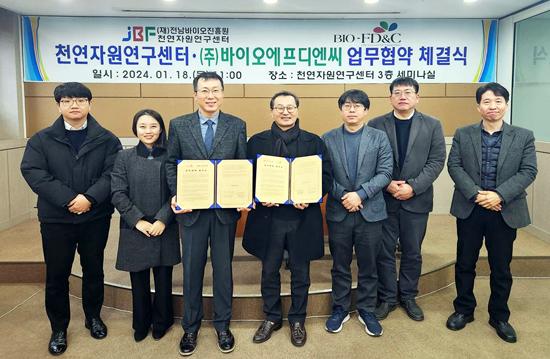 (재)전남바이오진흥원 천연자원연구센터는 전남도 지역산업 발전 협력을 위한 공동 협력 업무협약을 체결했다.