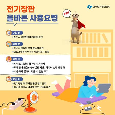 한국전기안전공사가 겨울철 라텍스 침구와 전기장판을 같이 사용해 화재 사고가 발생하지 않도록 주의를 당부했다.