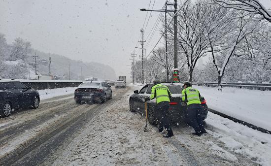 경찰은 눈이 내린 사흘 동안 교통경찰을 평소보다 배 이상 늘려 정체 구간에 배치했다. 교통불편을 최소화하기 위해 출근길 교통량이 많은 교차로와 상습 결빙구간에 경찰력을 모았다.