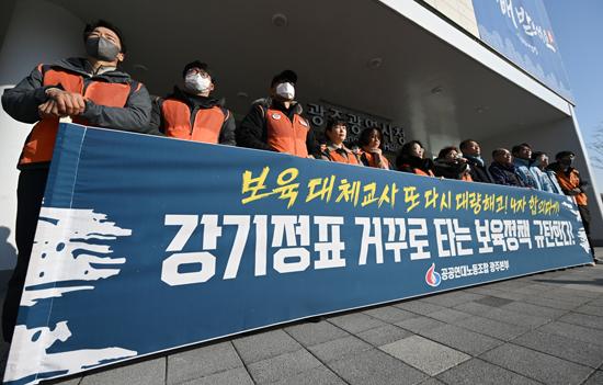 광주 보육 대체교사 노조가 기간제 보육 대체교사들을 해고하고 비담임교사를 확대 채용하려는 광주시 방침에 반발, 고용 보장을 촉구하고 나섰다.