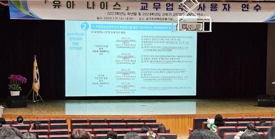 2024학년도 신학기 준비를 위한 유아나이스 시스템 교무업무 사용자 교육을 진행하고 있다. /광주시교육청 제공