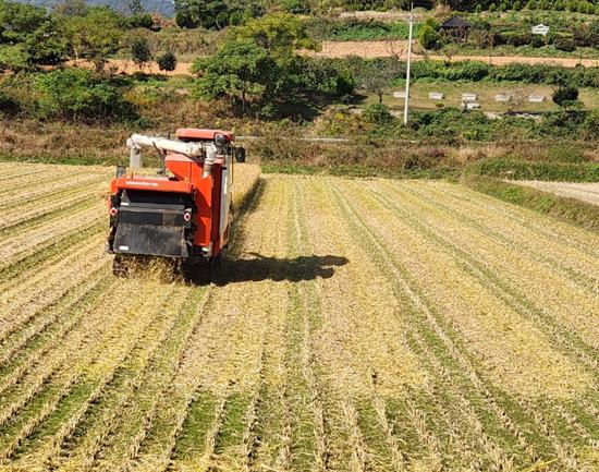 비료를 사용해 키운 벼 수확. /전남도 제공