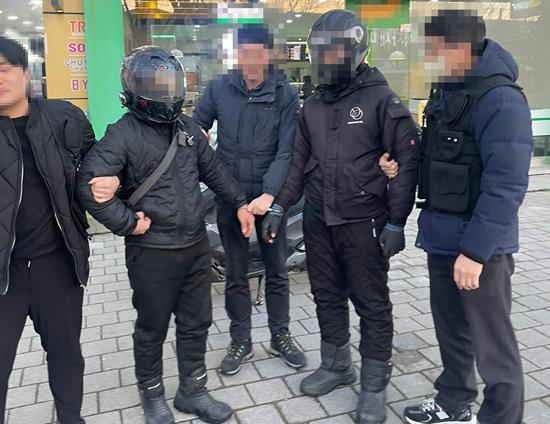 광주출입국·외국인사무소 직원들이 배달대행 업체에 불법 취업한 베트남 유행생들을 적발하고 있다. /광주출입국·외국인사무소 제공 2024.02.07.