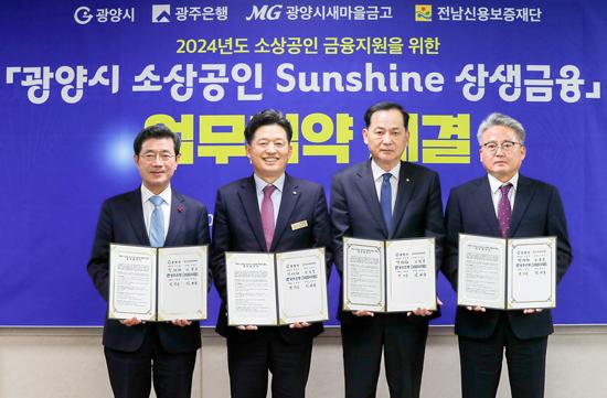 광양시가 전남신용보증재단, 광주은행, 광양시새마을금고와 ‘광양시 소상공인 Sunshine 상생금융 업무협약’을 체결했다고 19일 밝혔다.
