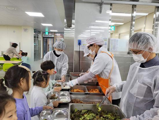 동부교육지원청에 따르면 이날 특별 점검은 정성숙 교육장을 비롯한 교육지원청 간부 공무원을 중심으로 식중독 사고가 집중 발생하는 개학 시기 위생·안전관리에 대한 경각심을 키우고 식중독 사고를 예방하고자 이뤄졌다. 급식 운영에 대한 애로 사항을 청취하고 조리실 시설과 설비 상태를 확인했다. 이어 점심 배식에 직접 참여했다.