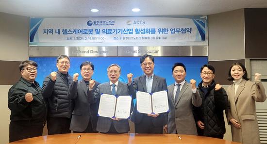 광주테크노파크는 의료기기 전문 시험·컨설팅 기업인 (주)ACTS와 광주 헬스케어로봇 및 의료기기 기업 지원을 위한 업무협약을 체결했다고 20일 밝혔다.