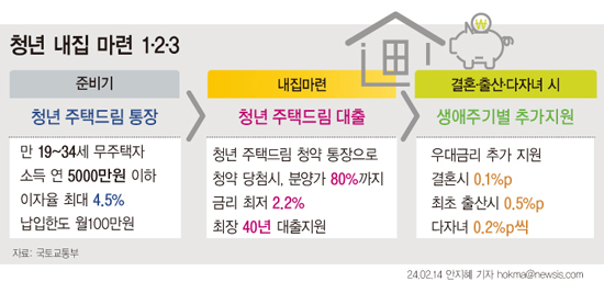 통장을 이용해 청약에 당첨되면 분양대금의 최대 80%까지 2%대 저금리로 대출해주는 전용 대출상품 \'청년주택드림대출\'을 지원한다. 대출의 구체적 사항은 관계부처 협의를 거쳐 오는 12월 확정 발표할 예정이다.