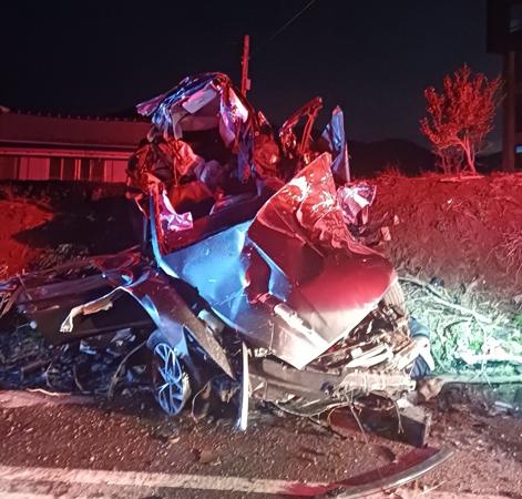 20일 전남 여수 소라면 현천리 편도 1차선 도로에서 승용차가 전신주를 추돌했다. /여수소방서 제공 2024.02.20.