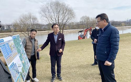 박연재 영산강환경유역청장이 27일 국가하천 승격을 앞둔 순천 동천을 찾아 하천 실태를 점검하고 있다. (사진=영산강환경청 제공)