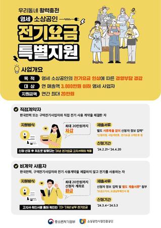 중소벤처기업부(중기부)는 오는 4일 오전 9시 영세 소상공인 전기요금 특별지원 사업 2차 접수를 개시한다고 3일 밝혔다.