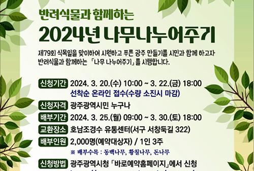 예약자에게는 알림톡으로 통보되며 25일부터 30일까지 서구 서창둑길 322 호남조경수유통센터에서 신청한 반려식물을 수령하면 된다.
