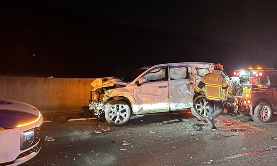 앞서 A씨가 추돌사고를 내기 전 베트남에서 귀화한 경차 운전자 C(37·여)씨는 두 아들을 태우고 귀가하던 중 고속도로 중앙 분리대를 충격하고 멈춰섰다.