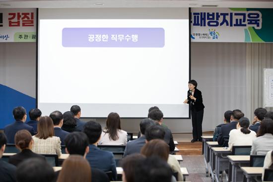 이번 교육은 최근 갑질 문화가 직원 간의 수직적 관계뿐만 아니라 수평적 관계에서도 발생하고 있어 갑질에 대한 인식 전환이 필요해 교육을 마련하게 됐다. 교육은 국민권익위원회 박연정 청렴교육 전문강사를 초빙해 ‘갑질 근절 관련 행동강령 등 부패방지교육’을 주제로 이뤄졌다. ▲광주광역시교육청 공무원 행동강령 ▲청탁금지법 ▲이해충돌방지법 내용을 이해하기 쉽게 사례 중심으로 실시했다.
