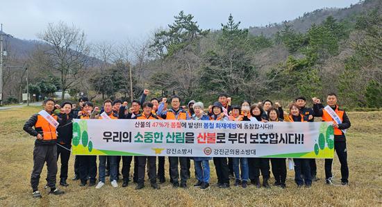 강진군 남성, 여성의용소방대원 320여 명이 위 기간 동안 참석하여 캠페인을 함께 하였으며, 등산객들을 대상으로 ▲ 산불 예방 캠페인 ▲ 산불 예방 안전 수칙 및 산불 발생 시 대피요령 안내 ▲ 담배꽁초 등 무단투기 및 농촌지역에서의 영농폐기물 등 소각 행위 금지 캠페인을 실시했다.
