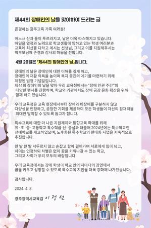 이정선 광주시교육감 장애공감 문화 조성 서한문. /광주시교육청 제공