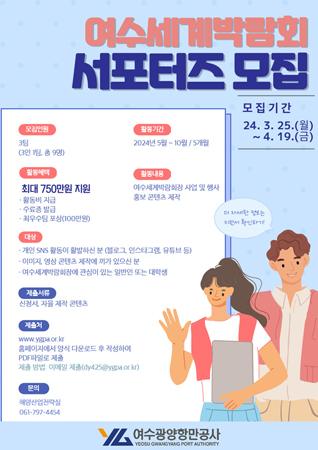 이번 서포터즈에 선발되면 5월부터 10월까지 약 5개월 동안 △마스터플랜 관련 콘텐츠 △박람회장 사업 및 행사 등 홍보 콘텐츠 △자율콘텐츠 제작 등의 다양한 활동을 하게 된다. 공사는 활동 중 콘텐츠 제작비를 지원하며, 활동 종료 후 우수팀에게는 포상도 실시할 예정이다.