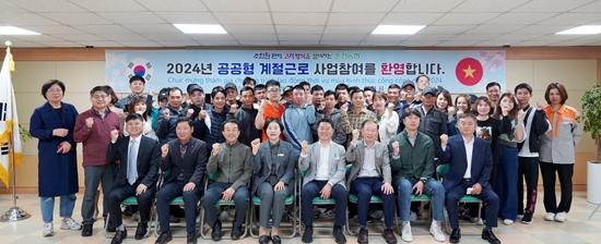 이날 베트남 계절근로자를 대상으로 입국설명회, 원활한 소통을 위한 번역 어플 사용법, 근로조건, 인권침해 예방 등 교육을 실시했으며, 이후 현장 설명을 거쳐 영농현장에 순차적으로 투입될 예정이다.